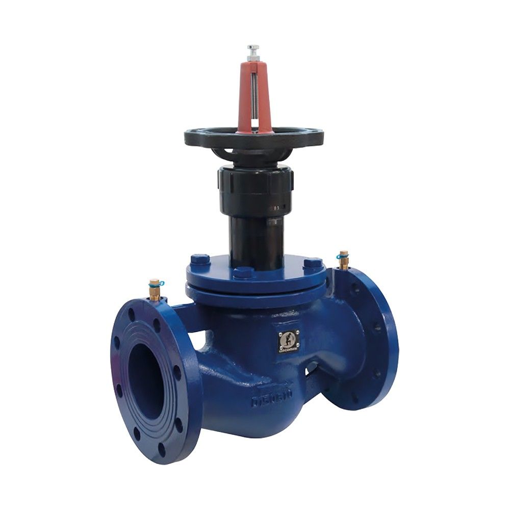 Cтатический балансировочный клапан с чугунным корпусом, с затвором из нержавеющей стали, фланцевым соединением и штуцерами, размером 1/4”, с внутренней резьбой для измерения дифференциального давления. Возможность применения с гликолевыми растворами -10-120°C, PN16