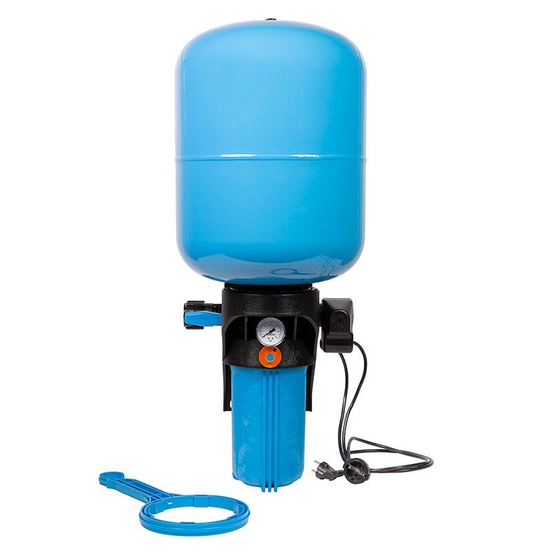 Предназначен для поддержания заданного давления в системах водоснабжения с предварительной фильтрацией воды. Легкий и удобный монтаж. Не требует дополнительной настройки. Автоматическое управление включением/выключением электронасоса. Полный комплект для автоматизации системы водоснабжения. Предварительная фильтрация воды. Календарь смены картриджей фильтра. Вся система устойчива к коррозии. Позволяют подключаться в любом удобном месте магистрали вне зависимости от направления потока воды. Объем бака 50 литров.