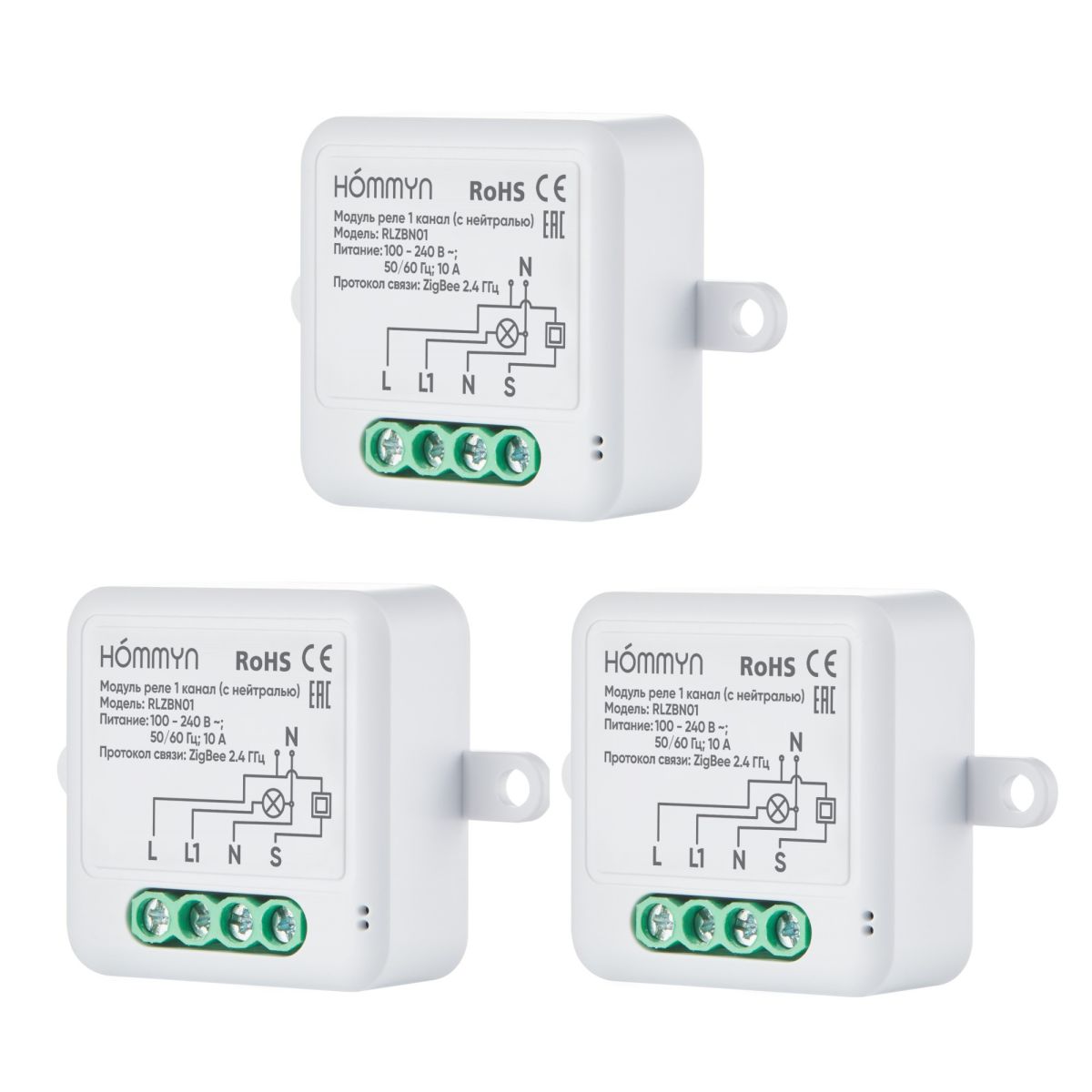 Комплект три умных реле (1 канал с нейтралью) HOMMYN 3RLZBN01
