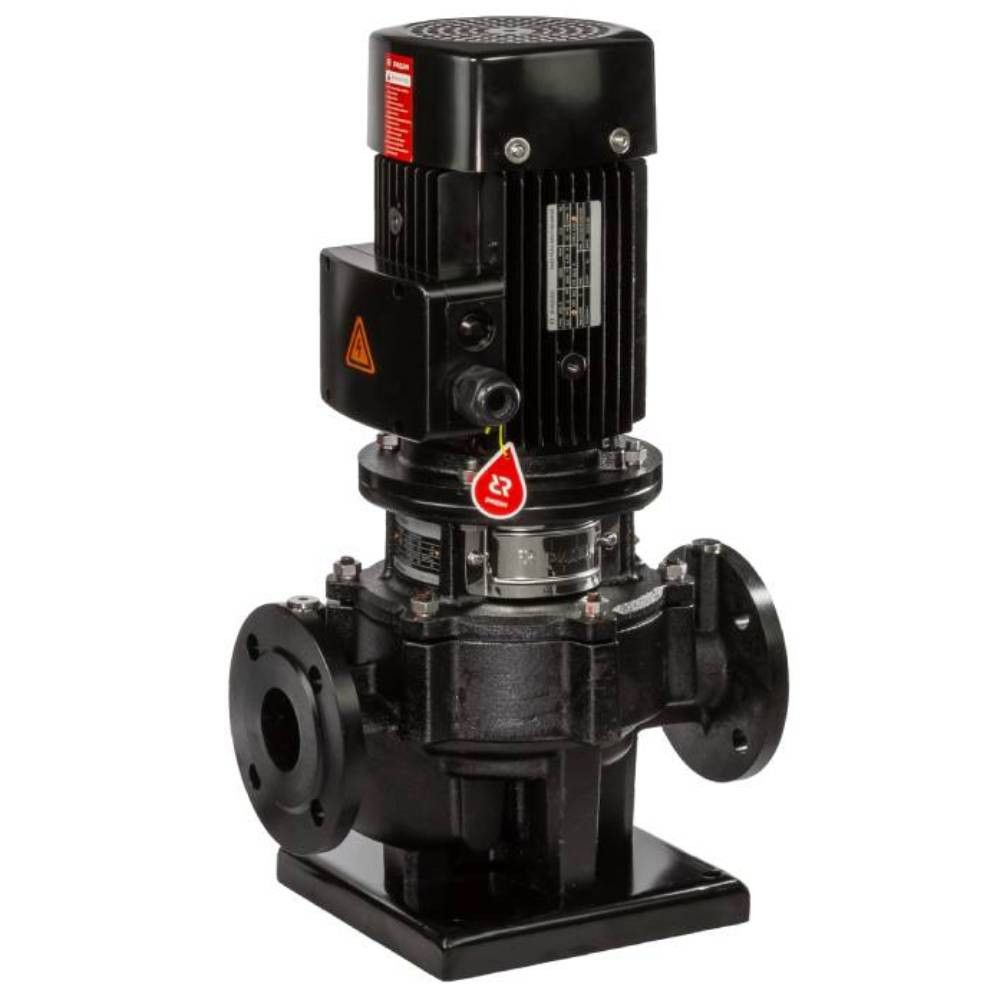 Центробежный насос RV состоит из корпуса, имеющего спиральную форму, и расположенного внутри жестко закрепленного рабочего колеса. Насос соединен с трубопроводом с помощью входного и выходного фланцев. Вращение рабочего колеса осуществляется с помощью электродвигателя. В насосах типа RV вал рабочего колеса и вал электродвигателя жестко соединены между собой посредством муфты. Уплотнение вала насоса – торцевое одинарное. Конструкция насоса позволяет снять головную часть насоса (двигатель, фонарь и рабочее колесо) для технического или сервисного обслуживания без полного демонтажа насоса с трубопровода.