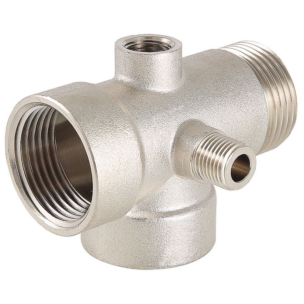 Пятиходовой соединитель для насоса VTr.600 выполнен из латуни CW617N методом горячей объемной штамповки, имеет никелевое гальванопокрытие.