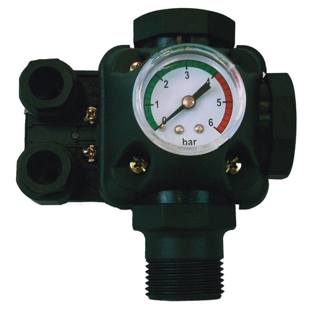 PR-10 представляет собой реле давление с манометром собранных на базе 3-х ходового фитинга, может монтироваться в системус без дополнительных монтажных операций.