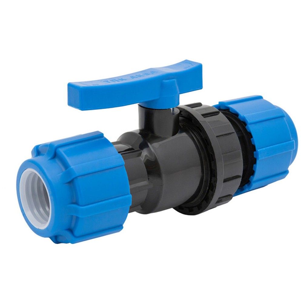 Шаровый кран разъемный компрессионный (цанга-цанга). Это довольно полезная деталь трубопровода, которая может выполнять функцию не только регулирующей арматуры, но и соединительной муфты. Разъемный шаровый кран изготавливается диаметрами 20/20, 25/25, 32/32, 40/40, 50/50 и 63/63 мм. Длина крана от 134 мм до 295 мм (в зависимости от диаметра). Материал корпуса крана - полипропилен.