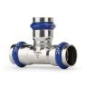 Тройник раструбный Varmega Inox Press равносторонний, используется для соединения труб равных диаметров. Для получения надежного неразъемного соединения трубы и фитинга потребуется специальный пресс-инструмент с насадками типа профиль «V».