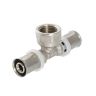 Пресс-фитинг – тройник с переходом на внутреннюю резьбу служит для присоединения к металлопластиковым (металлополимерным) трубам и трубам из сшитого полиэтилена или полиэтилена повышенной термостойкости элемента системы, имеющего наружную резьбу. Резьба фитинга – трубная по ГОСТу 6357.