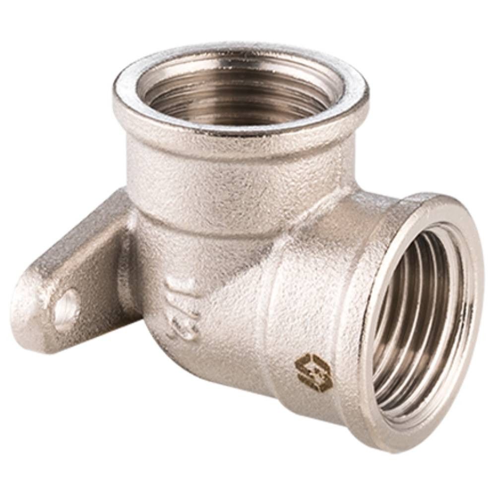 Угольник с креплением, никелированный, от производителя MVI. Создание поворота на участке трубопровода систем отопления или водоснабжения, а также на трубопроводах сжатого воздуха и технологических трубопроводах, транспортирующих неагрессивные к материалу соединителей газы и жидкости.